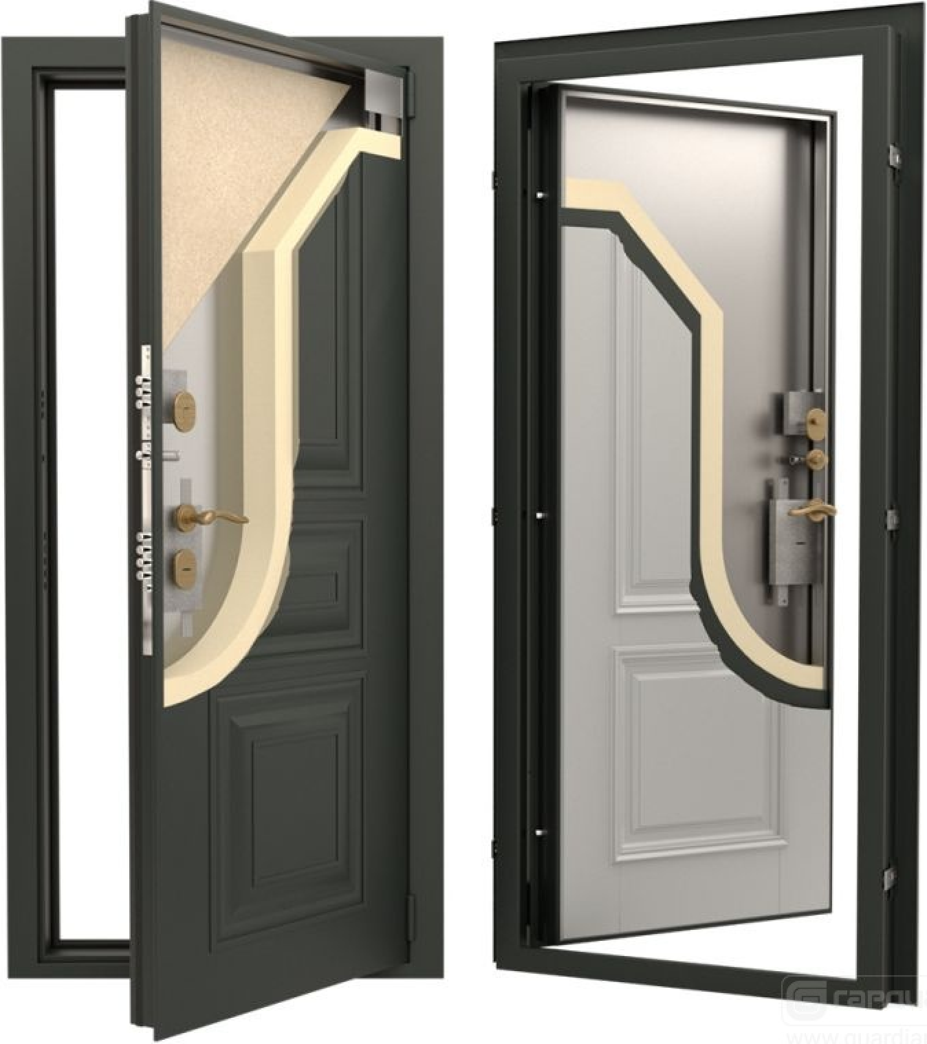 Комплектация двери предусматривает замки Гардиан 4 класса взломостойкости (ГОСТ Р 5089−2011).
